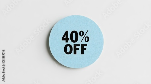 Black '40% OFF' Text on a Light Blue Round Paper Note. White Background with Copy Space