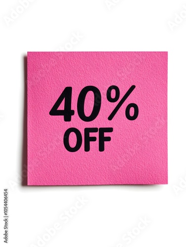 Black '40% OFF' Text on a Magenta Square Paper Note. White Background