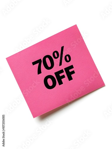 Black '70% OFF' Text on a Hot Pink Square Paper Note. White Background