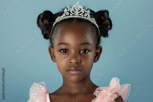 Black 8 yrs old Girl in Tiara, studio Portrait