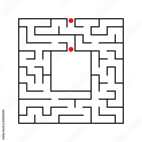 Black abstract square maze with a place for your image. An interesting and useful game for kids. A simple flat vector illustration isolated on a white background.