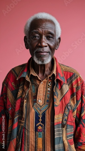 black African elderly guy plain pink background in casual stylish fashion whole body portrait
