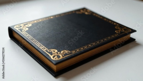 Black and gold luxurious leather-bound invitation card with debossed pattern , formal invitation, high-quality paper, elegant look