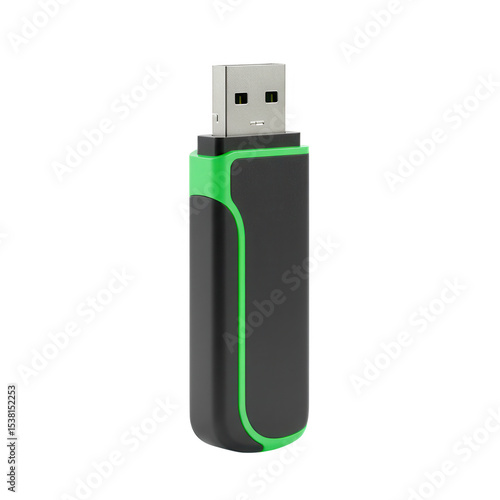 Black and green usb flash drive isolated on transparent background