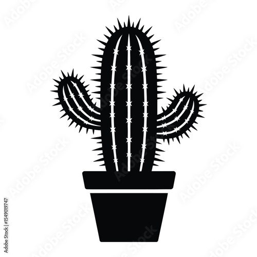 cactus, plant, pot, black, white, graphic, illustration, simple, design, icon, symbol, monochrome, minimalist, botanical, desert, nature, flora, succulent, spine, thorn, indoor plant, home decor, vector, clip art, silhouette, artwork, printable