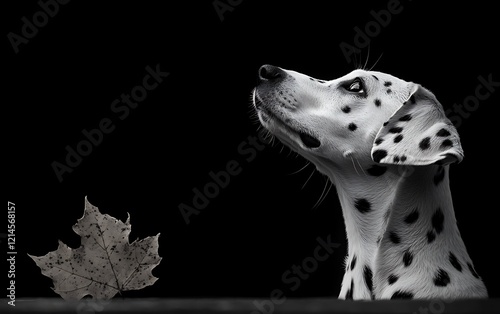 dalmatian, dog, pet, animal, black, white, looking, up, leaf, autumn, portrait, nature, sharpened, closeup, animal portrait, studio, black-and-white, photo, studio shot, animal, photographic, image, picture, spotted, cute, adorable, domestic, mammal, domesticated, purebred, doggy, photo, art, monochrome, closeup