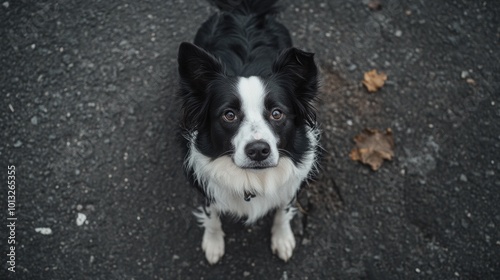 Black and White Dog Looking Up