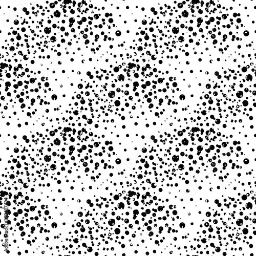 Black and white dotted semi circles with texture shading effect. Seamless vector pattern abstract half moon background. Overlapping celestial spheres backdrop with hand drawn dots. Monochrome repeat