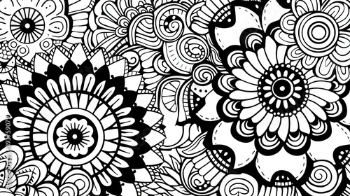 floral pattern, overlapping, flower, swirl, abstract, shape, depth, complexity, contrast, design, art, graphic, illustration, line art, doodle, hand-drawn, monochrome, decorative, wallpaper, texture, background, digital artwork, vector, design element, poster, textile, fabric, home decor, craft, hobby, creative, whimsical, elegant, modern, contemporary