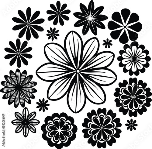 Black and White Flower Vector Art: Floral Design Elements, Botanical Illustration, Graphic Flowers