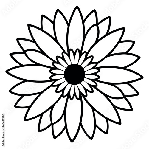 Black and White Gerbera Daisy Vector Illustration Layered Petals