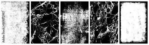 Black and white grunge. Distress overlay texture. Abstract surface dust and rough dirty wall background concept. Worn, torn, weathered effect. Set vector illustration, EPS 10.