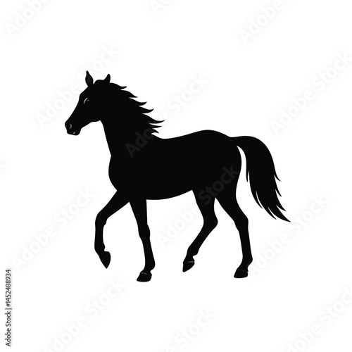Black and white horse silhouette design vector art illustration.Veсtor A silhouette of a running horse isolated on white background.