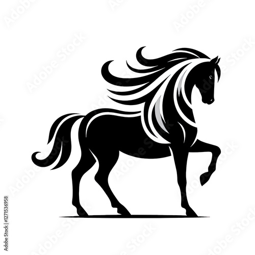 horse, silhouette, vector, illustration, black, white, isolated, background, animal, design, graphic, art, clip art, nature, wild, equine, mammal, drawing, digital, print, logotype, template, symbol, icon, pony, mustang, fast horse, mare, foal, gallop, run, trot, racked, motion, jumping, countryside, farm, ranch, western, vintage, retro, elegant, minimal, monochrome, contrast, outline, shadow