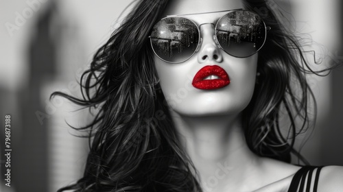 red lips, city landscape, sunglasses, black-and-white, urban, chic, fashion, modern, artistic, glamour, portrait, femininity, city life, elegant, face, beauty, cosmetic, eye-catching, trendy, female, woman, model, profile, accessory, metropolis, monochrome, coiffure, lipstick, shine, glamourous, city, cool, sophisticated, photo, fashionable, closeup, contrast, lifestyle, vibrant, detail, attractive, young adult, lip, hair, goggles, summer