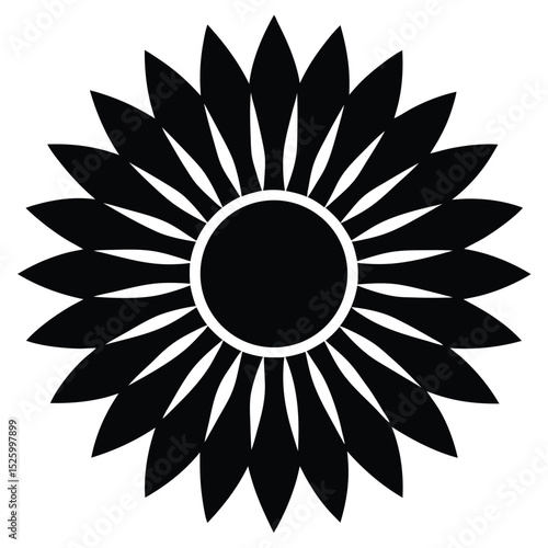 sunflower, black, and, white, graphic, design, stylised, simple, bold, flower, icon, symbol, vector, clip art, silhouette, floral, element, illustration, nature, plant, monochrome, abstract, geometric, pointed, flower petals, sharp, sun, summer, logotype, artwork, decorative, pattern, minimal, clean