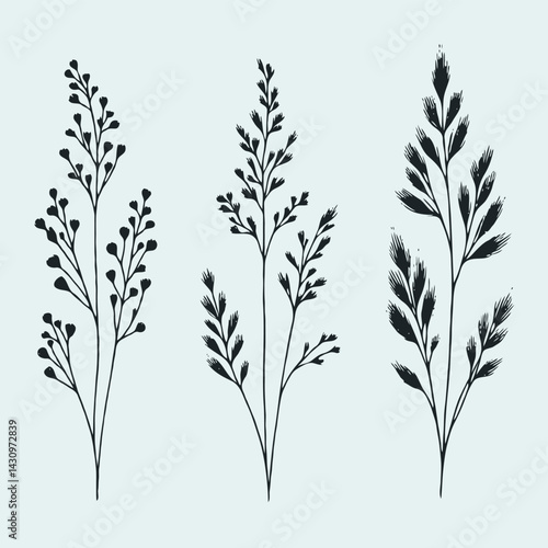 floral, drawing, vignetting, blossom, bloom, plant, flora, illustration, collection, design, background, graphic, nature, tree branch, leaf, element, shape, silhouette, decorative, pattern, wallpaper, natural, grass, branch, swirl, retro, black-and-white, pencil drawing, line art, symbol, bouquet, linear, ornamental, border, frame, banner, twig, feather, wheat, quill, grain, barley, field, cereal