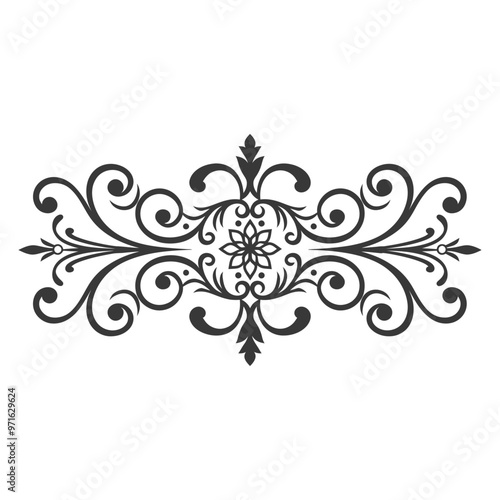 black, white, ornament, design, swirl, floral, center, pattern, decorative, flourish, symmetric, elegant, intricate, ornate, scroll, graphic, art, illustration, shape, style, element, motif, vintage, retro, traditional