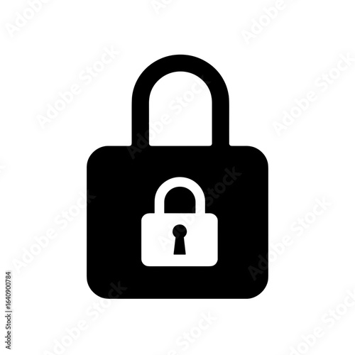 Black and white padlock silhouette, symbol of data privacy and digital security