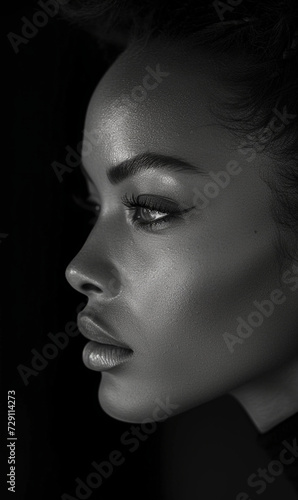woman, beauty, hair, fashion, model, face, glamour, black, brunette, person, lady, dark, studio, sensuality, 1, long, make-up, sensual, people, coiffure, eye, body, style, skin, black-and-white, light, looking, valentine, portrait, closeup, closeup, closeup, lip, profile, make-up, head