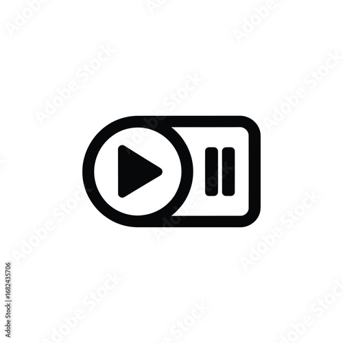 Black and White Play and Pause Icon Button for Multimedia Interface Design