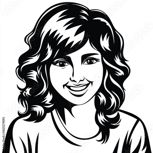 woman, monochrome, portrait, smiling, happy, young, curly hair, black-and-white, female, girl, cheerful, pretty, face, hair, person, smile, adult, looking, head, elegance, beauty, confident, youth, positive, emotion, facial expression, silhouette, outline, linear, simplicity
