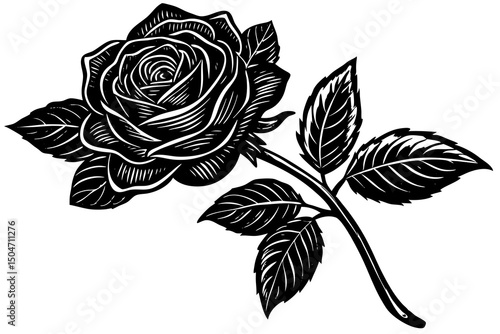 rose, black-and-white, illustration, botanical, floral, flower, design, graphic, monochrome, vintage, art, nature, plant, stem, leaf, flower petals, romantic, elegant, classic, tattoo, symbol, beauty, line art, woodcut, engraving
