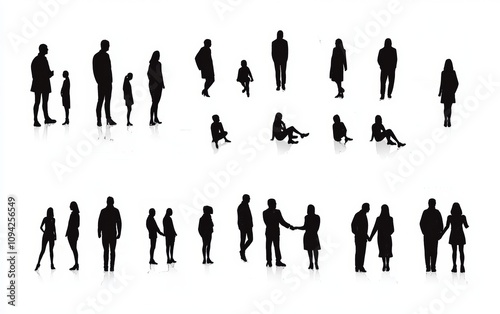 silhouette, vector, illustration, people, figure, black-and-white, sitting, standing, holding hands, interact, group, design, icon, outline, contour, graphic, collection, human, female, male, young, body, shape, architecture, architectural, plan, view, isolated, background, simple, draw, drawing, man, girl, grouping, arrangement, pattern, art, white, character, pose, interaction, scene, style, visual, layout