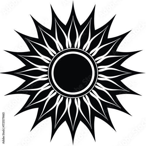 sun, sunburst, star, burst, ray, light, shine, solar, energy, heat, summer, sky, day, bright, glow, radiant, symbol, design, graphic, abstract, geometric, shape, pattern, element, decoration, ornament, radial, circle, round, black