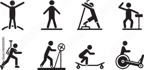 vector, icon, fitness, illustration, man, woman, set, black, white, people, silhouette, symbol, design, pictogram, sport, exercise, physical exercise, activity, gym, health, training, body, lifestyle, figure, human, athlete, shape, isolated, couple, male, female, team, active, posture, muscular, graphic, modern, art, element, abstract, simple, flat, line, concept, person, icon, group, drawing, collection