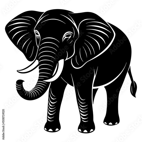 elephant, vector, silhouette, line art, animal, wildlife, jungle, safari, mammal, black-and-white, african elephant, asian elephant, nature, pachyderm, graphic design, hand-drawn, monochrome