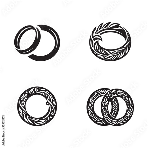 Black and white wedding ring vector silhouette . Ornament concept icon.