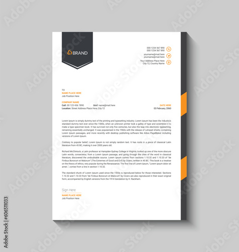 letterhead, application, corporate, sheet, design, creative, abstract, document, vector, page