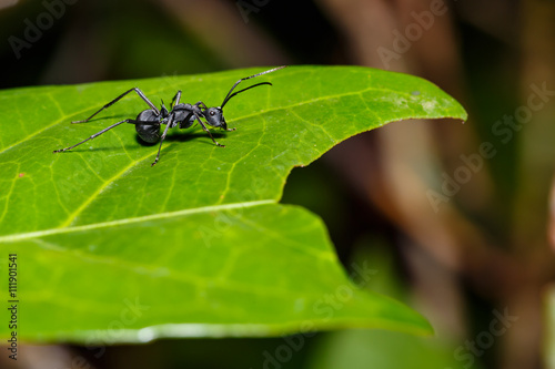 Black ant on leaf