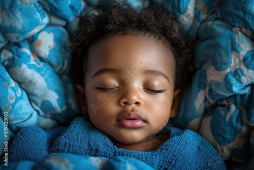 african, baby, sleeping, black, blue, cosy, peaceful, serene, afternoon, comfort, calmness, children, infant, rest, warmth, blanket, natural, light, moment, relaxation, gentle, adorable, cute, safe, home, solitude, dreaming, innocence, joy, lullaby, tender, care, sweet, dream, cuddly, feature, round, face, curly, hair, environment, restful, sleep, cuddled, nap, time, soft, fabric
