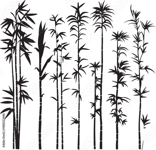 Black Bamboo Silhouette Vector Illustration, Nature, Design, Art