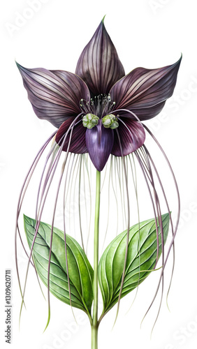 Black Bat Flower: This striking artistic illustration highlights a unique black bat flower, showcasing its dramatic dark petals and distinctive whisker-like tendrils, an exotic beauty.