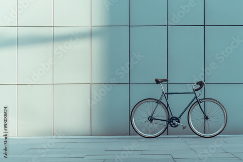 bike, bicycle, cycling, cycle, road, urban, city, city landscape, landscape, city landscape, architecture, building, wall, exterior, modern, minimalist, contemporary, grey, grey, blue, turquoise, green, light, shadow, sunlight, sun, pavement, asphalt, concrete, outdoors, day, summer, cool, stylish, classic, vintage, retro, simple, background, design, transportation, travel, leisure, hobby, sport, rider, bicyclist