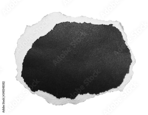 Black blank and empty cardboard scrap, piece isolated on white background, clipping path