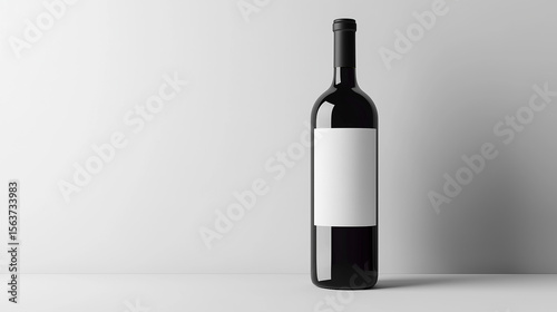 Black bottle of red wine with label mockup on white background