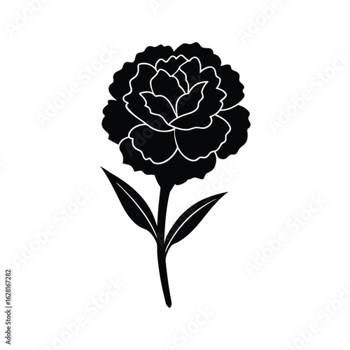 Black Carnation Flower Silhouette icon – Elegant Floral Vector Illustration for Vintage, Wedding, and Tattoo Design