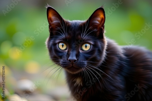 black cat focusing with bright eyes