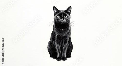 cat, black, animal, pet, mammal, isolated, studio, indoor, white, background, image, photo, graphic, design, sitting, portrait, greyscale, monochrome, still, domestic, mammal, animal, cat, black cat, shade, even, lighting, copy, space, digital, illustration, poster