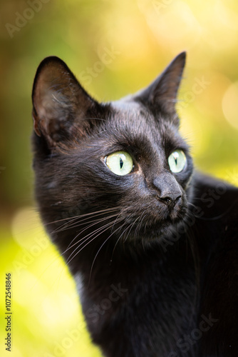 animal, cute, pet, pet, puppy, cat, cat, black, grass, lawn, meadow, green, black cat, autumn, nature, garden, outdoors, furry, fur, shiny