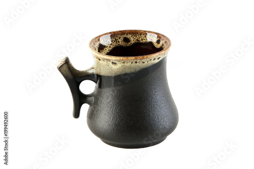view, horizontal, kitchen utensile, kitchen, eatery, side, table, tableware, blank, object, cup, white, drink, foam, mug, isolated, hot drink, break, background, aroma, closeup, cafes, breakfast, ceramic, dark, black, colours, small, 1, up high, single