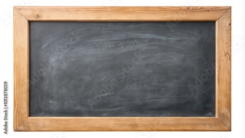 Black chalkboard with wooden frame isolated on white background