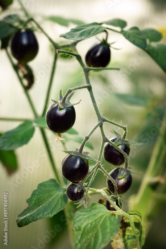 agriculture, hothouse, greenhouse, black, tree branch, bunch, cherry, closeup, hanging, crop, dark, food, fresh, green, group, harvest, juicy, leaf, macro, meal, midnight snack, natural, nourishment, organic, plant, small, stem, summer, sweet, tomatoes, vegetable, vegetarian, water, wet, whole