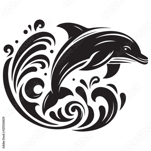 Black Color Dolphin silhouette design Vector Illustration, Solid White Background (8).eps
