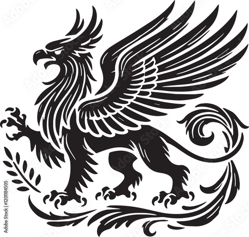 Black Color Mythic Bird Griffin Silhouette Vector Illustration, Solid White Background