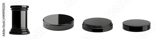 black, container, cosmetic, cardboard box, product, design, cylinder, lid, round, container, bottle, beauty, make-up, jar, cosmetic, glasses, minimalist, premium, elegant, luxury, modern, simple, clean, professional, chic, sophisticated, skincare, toiletry, display, merchandise, arrangement, still life, studio, photo, white, monochrome, shadow, texture